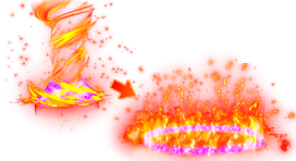 ![]() Une tornade de flammes s'agrandit au fil du temps.\nLes flammes persistent un certain temps et attirent les ennemis touchés vers l'intérieur. |