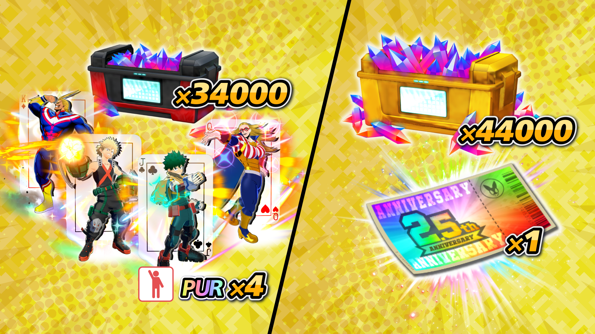 Pack bonus B de cristaux de Héros spé. 2,5e anniversaire :\ ncontient « 34 000 cristaux de Héros » avec « 4 Emotes PUR "Carte à jouer" » en cadeau !